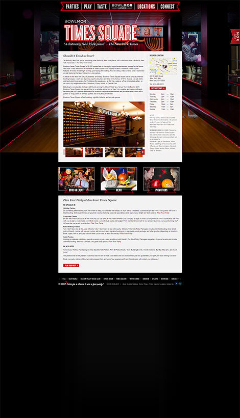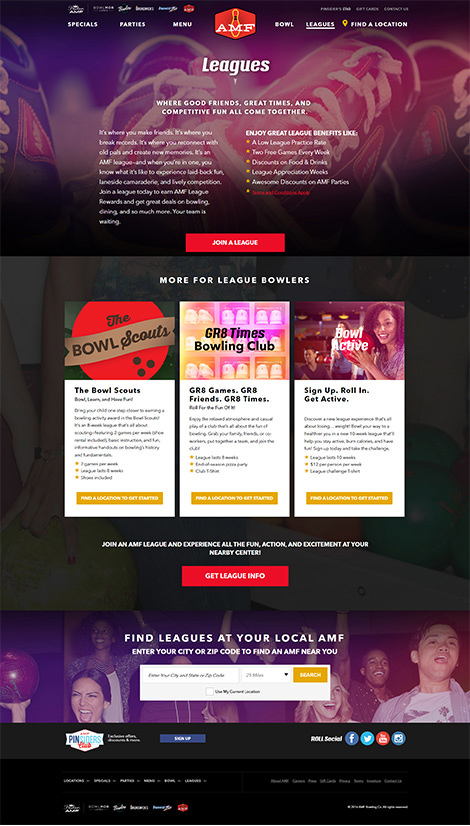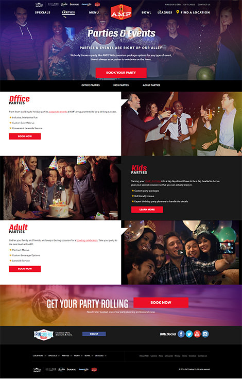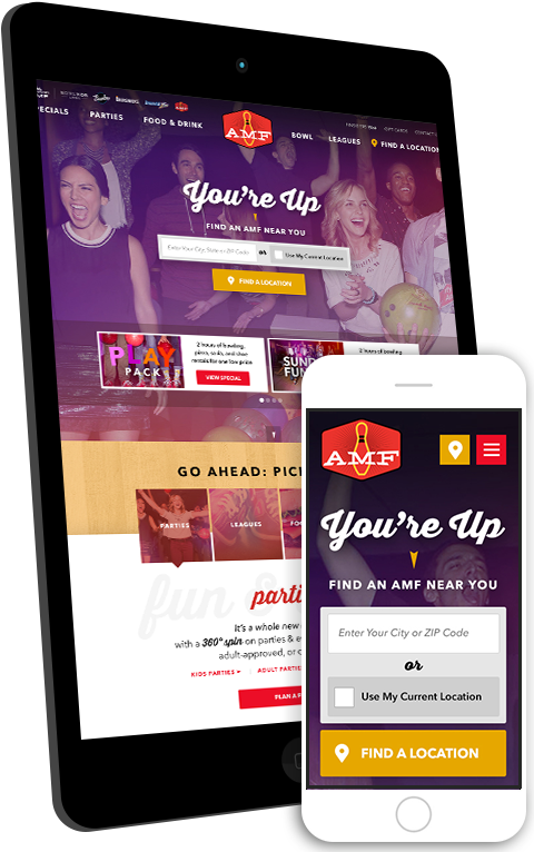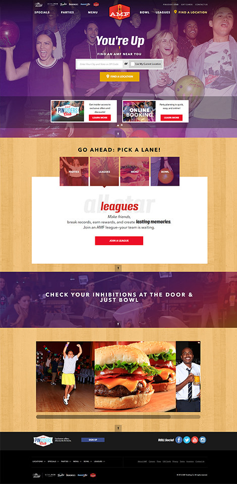 Bowlmor AMF’s consolidation included combining websites, on-site infrastructures, and marketing platforms into one system. These needed to work together in order to deliver unified objectives ranging from weekly promotions, purchasing of party packages, and supporting loyalty or league programs. Digital marketing efforts focused on maximizing the engagement of existing customers in order to spur more visits, and increasing private event bookings via the Bowlmor AMF website.