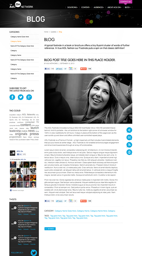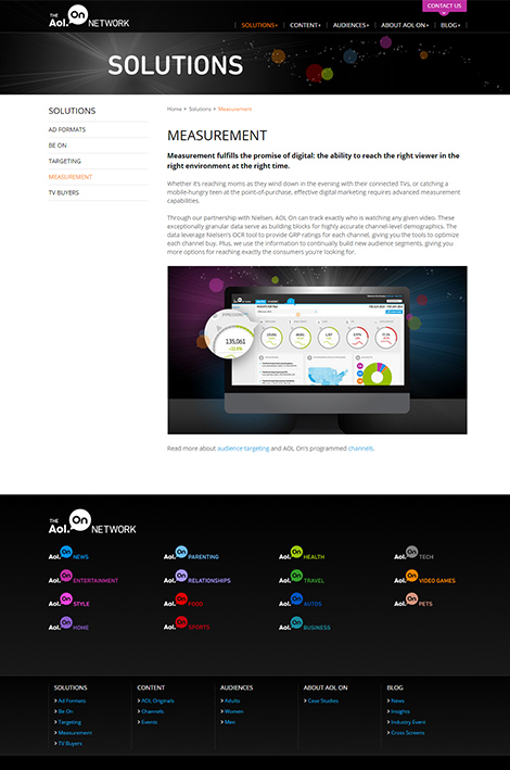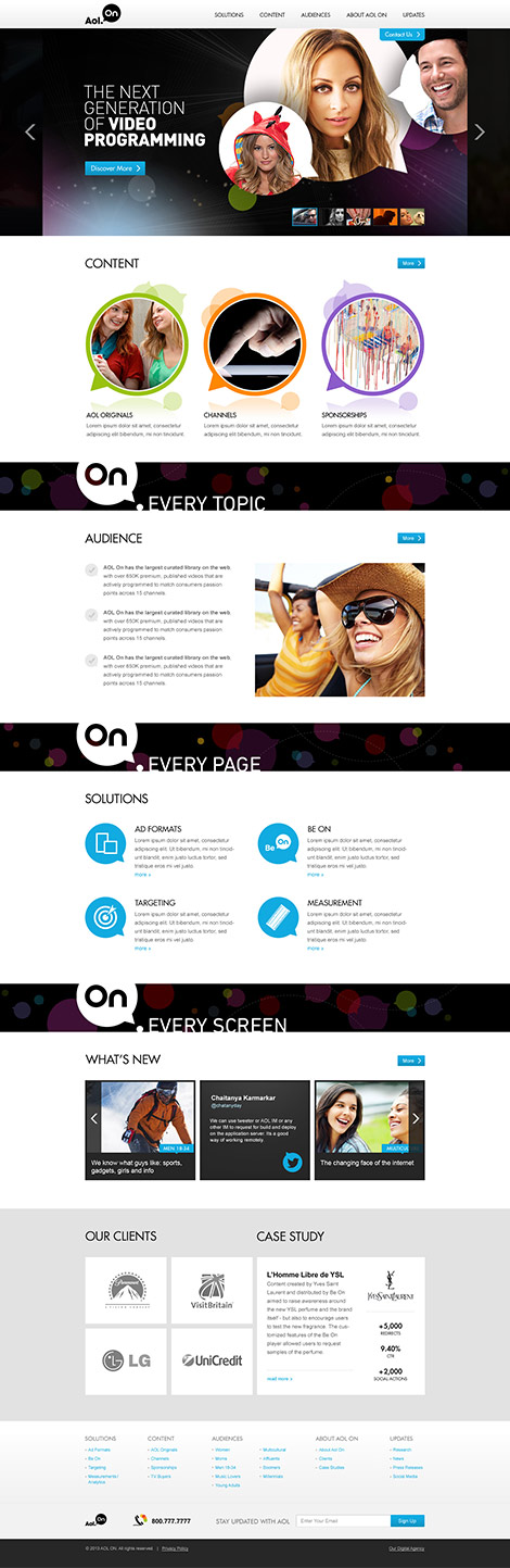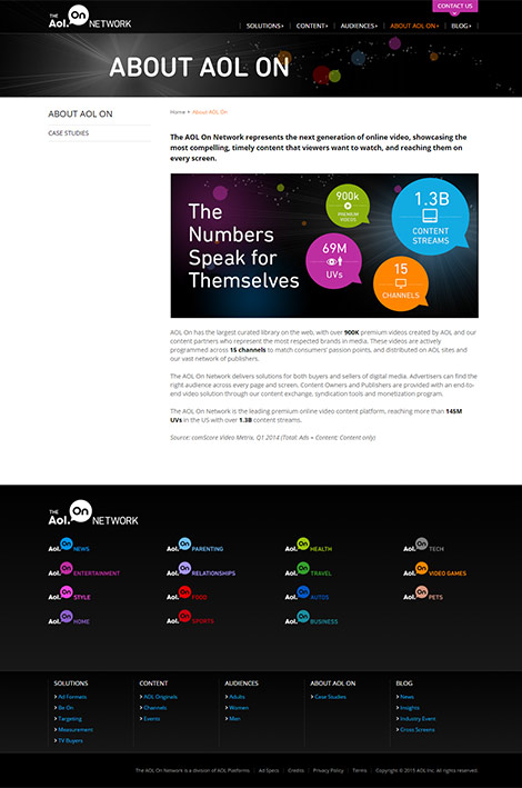 The business venture knew that it would be rapidly evolving its offerings over the next two years, requiring extensive updates to its website in order to keep it current. The AOL On offering is one of innovation and uniqueness, and that needed to be conveyed through their website design.