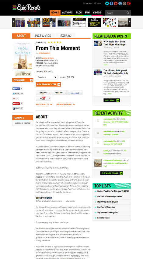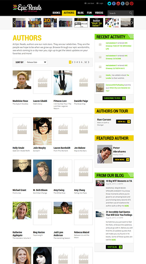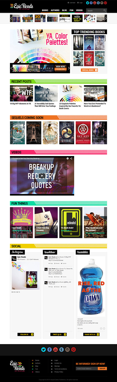 EpicReads is a digital community designed to connect readers with HarperTeen authors and books. It is a controlled social community and loyalty club that showcases the HarperTeen lines. Pelorus Digital Media designed their original website, and when it was time to revamp, the team was ready to support the platform update.