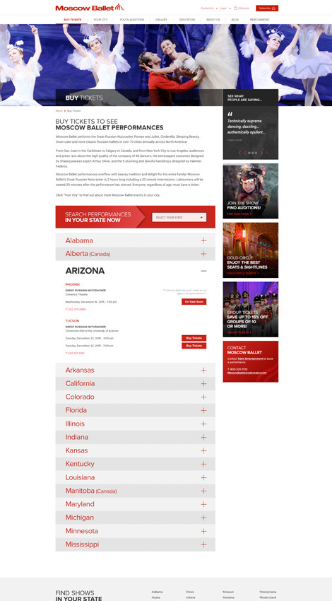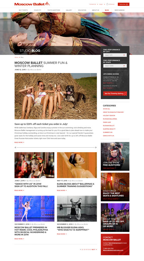 The unique and visually appealing new design communicates the beauty and legacy of the Moscow Ballet to online audiences.