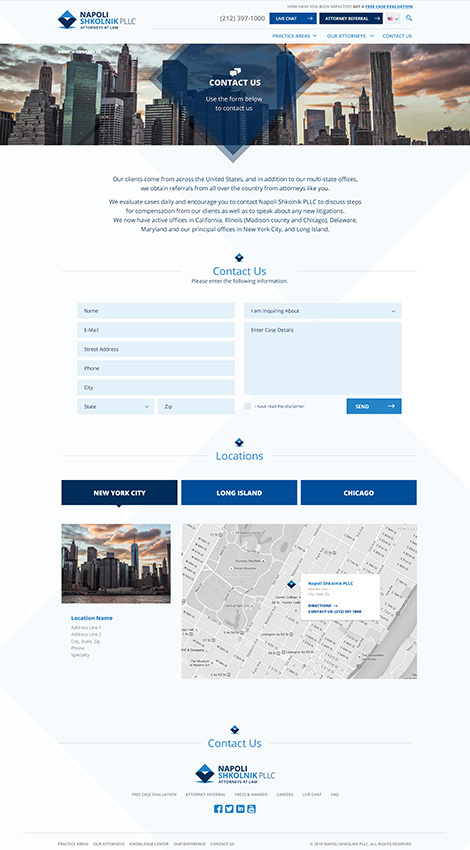Napoli Shkolnik PLLC is a national litigation firm working with victims of personal injury, medical malpractice, unlawful convictions, among many other wrongs. The Manhattan law firm serves local clientele, with multiple offices nationwide.
