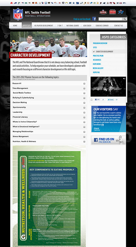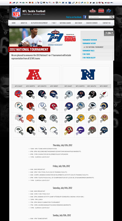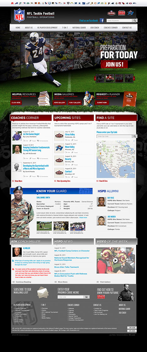 The website was the hub of digital marketing efforts that hoped to increase program signups and engagement. A unique web design and informative content set the program apart by leveraging the excitement that the NFL brings to entice youths to get involved.