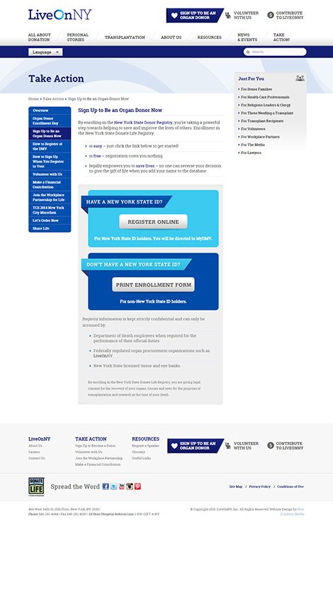 NY Organ Donor Network is the largest organization of its kind in the largest city in America. They wanted to increase their online presence as well as simplify ongoing content updates. With a ranking of 48 out of 50 and seasonal campaigns driving content changes this was a considerable challenge.