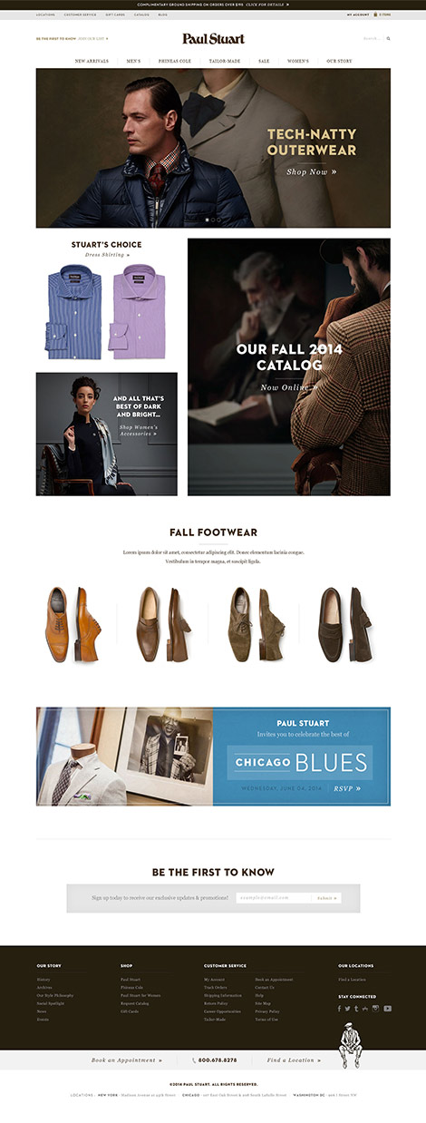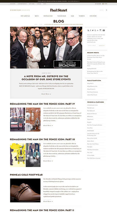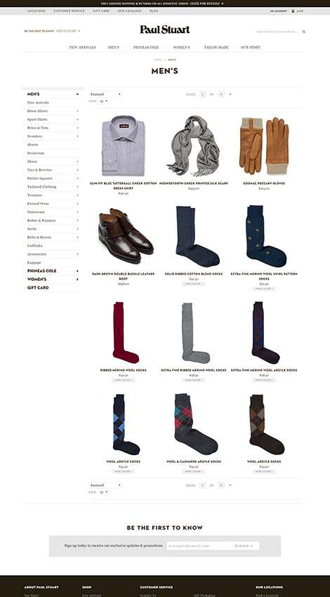For over seven decades, Paul Stuart has been a purveyor of some of the finest clothing in the world. Our website designers helped them refresh their luxury brand status with an updated online experience, including the “shop within a shop” integration of Phineas Cole, a sub-brand geared towards a younger demographic.