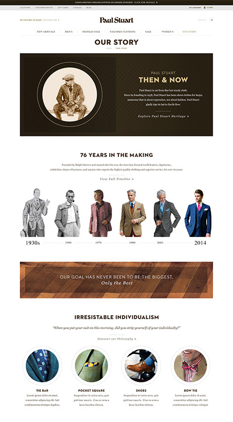 In the retail space Paul Stuart operates, seamless online and offline customer interaction was a requirement. Integration with a new point of purchase software, and an inventory management system helped take their website design to new heights.