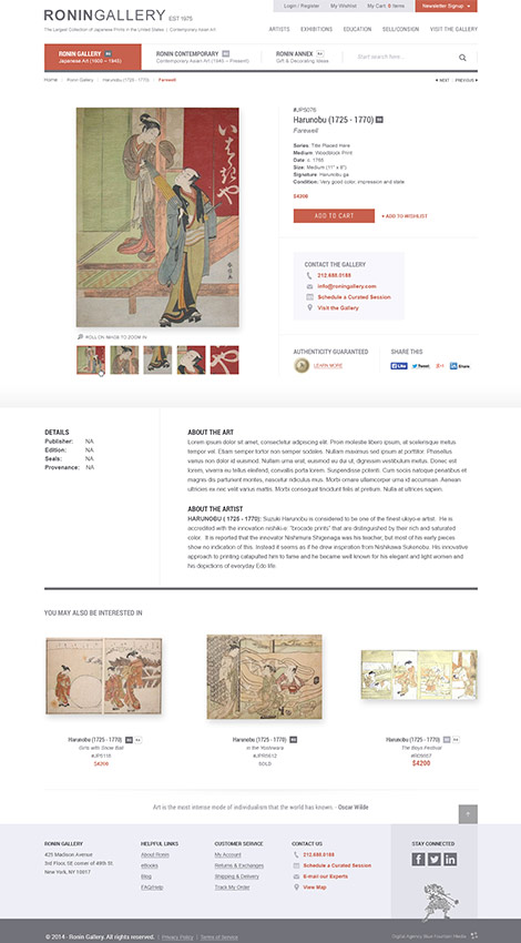 An art gallery known for curating high-quality, unique Asian works of art, Ronin Gallery came to Pelorus Digital Media to boost its online sales.