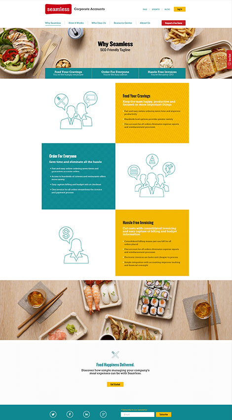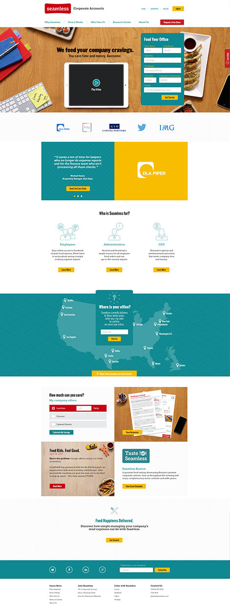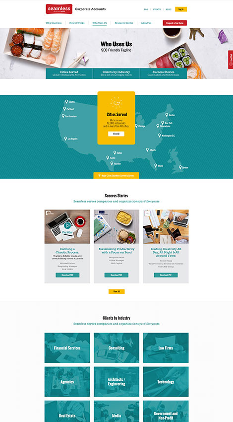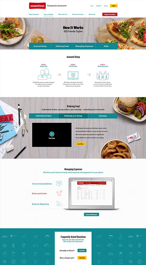 Originally founded in 1999, Seamless Corporate is a B2B service that provides companies with an online system to order food from different restaurants and caterers in their area, while simplifying and streamlining the process of meal expense reporting and management.