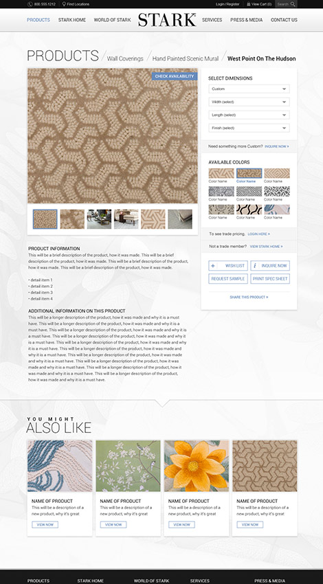With a target client spanning the professional interior designer, the individual consumer, and retail wholesale outlets, it is easy to imagine the variety of needs to be met. Stark turned to PDM to create and ecommerce experience that supports creativity as well as showcases an extensive catalog of products available.