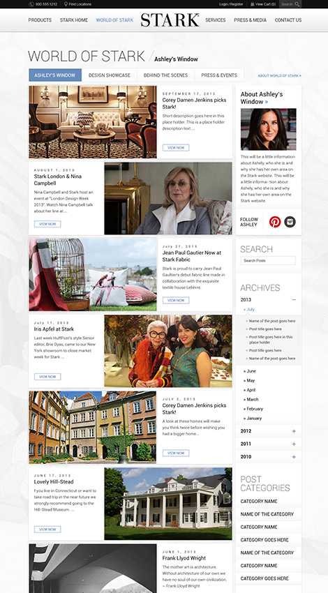 As a leading brand in the interior design, furniture, carpets and home décor space, Stark digital presence demanded a site that can fill the needs of various user groups. Stark Carpet offers an entire new concept in home furnishings to the discriminating designer and will continue to explore the world markets for new and innovative ideas, qualities, designs and effects.