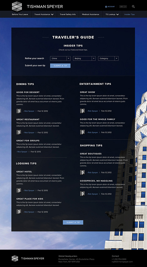 Tishman Speyer is a commercial real estate firm that has a group of global professionals working to create properties of enduring value across the globe. For over 100 years they have been working to change the landscape of the real estate market by combining local experience, with international best practices.