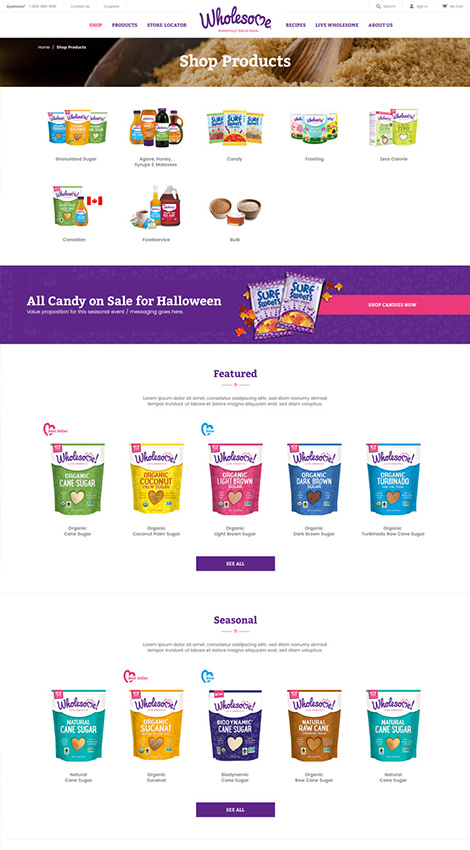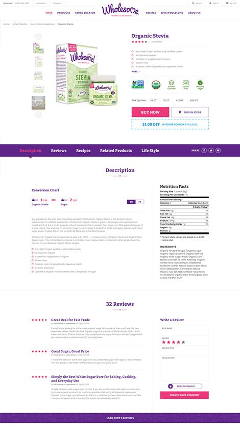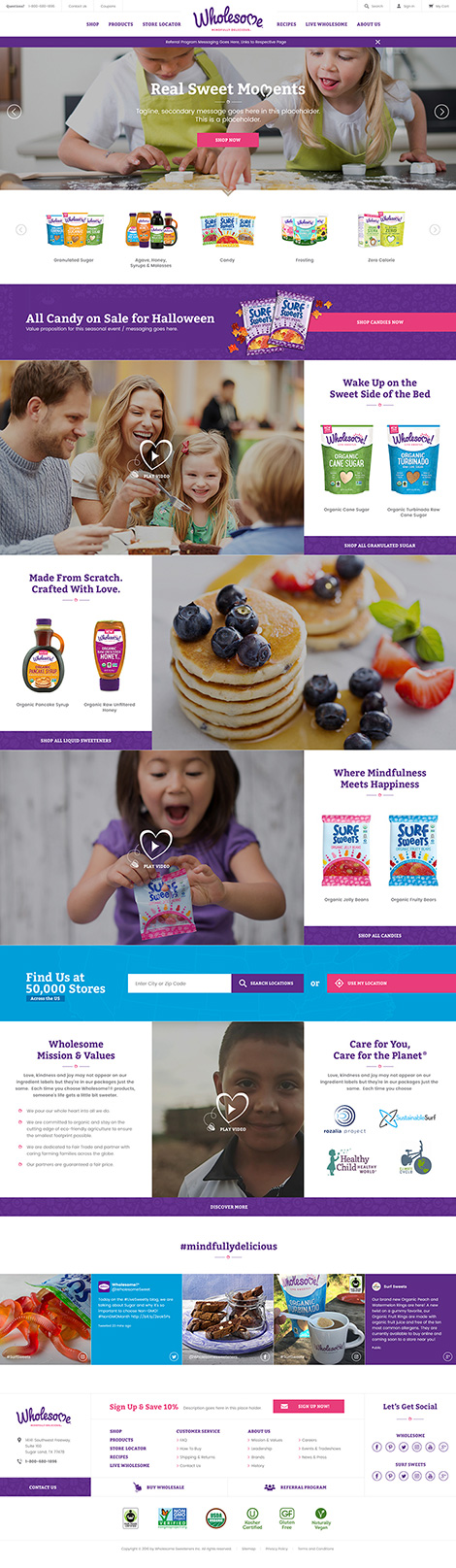 Wholesome engaged Pelorus Digital Media to redesign and re-launch the wholesomesweet.com website. The goal of the new website was to convey the better for you product offerings to the correct audiences, including key value propositions and ultimately driving product sales and stronger awareness. Pelorus Digital Media delivered a website based on an actionable strategy that drove the design and development phases. By utilizing a highly scalable content management system, and incorporating a variety of searchable recipe indexes, we were able to show the high quality premium brand off in a new light while allowing users to easily find and buy the products they love.